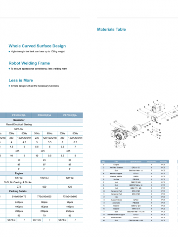 | Модель | PB2500 (E) A | PB3300 (E) A | PB5000 (E) A | PB6000 (E) A | PB7000 (E) A | |||||