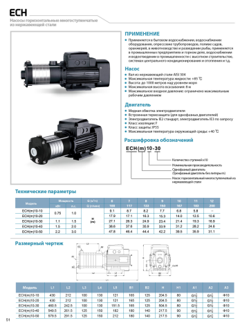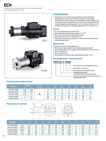 Горизонтальные многоступенчатые центробежные насосы из нержавеющей стали — ECH
