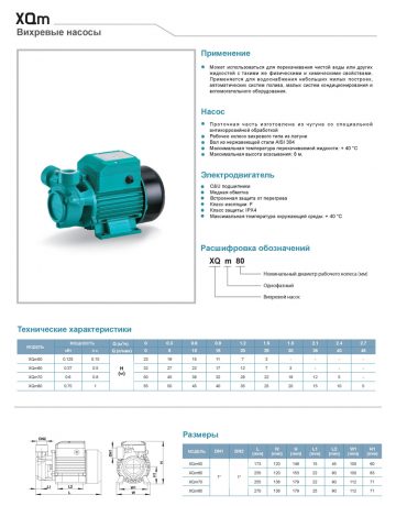 Может использоваться для перекачивания чистой воды или других жидкостей с такими же физическими и химическими свойствами. Применяется для водоснабжения небольших жилых построек, автоматических систем полива, малых систем кондиционирования и вспомогательного оборудования.