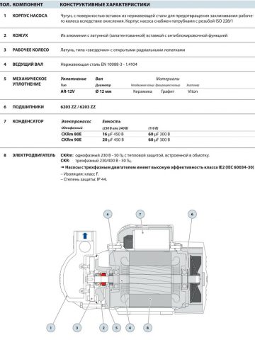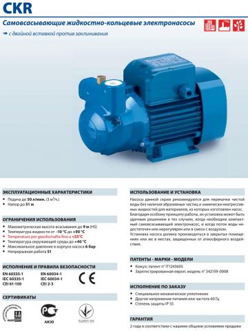 Насосы данной серии рекомендуются для перекачки чистой воды без наличия абразивных частиц и химически неагрессивных жидкостей для материалов, из которых изготовлен насос.