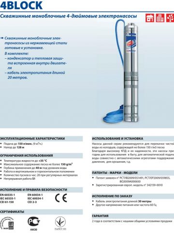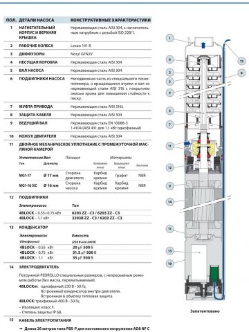 Насосы данной серии рекомендуются для перекачки чистой воды из колодцев, содержащей не более 150 г/м3 песка.