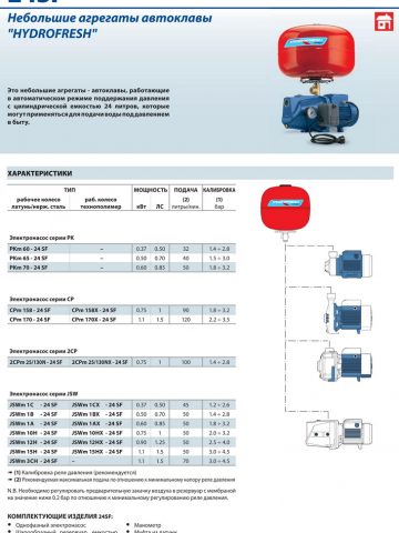 Это небольшие агрегаты — автоклавы, работающие в автоматическом режиме поддержания давления с цилиндрической емкостью 20 литров, которые могут применяться для подачи воды под давлением в быту.