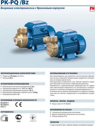 Они рекомендуются для перекачки чистой воды без абразивных частиц и химически незгрессивных жидкостей к материалам, из которых сделан насос.