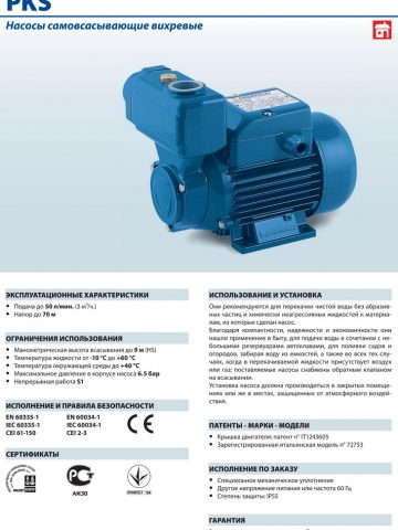 Они рекомендуются для перекачки чистой воды без абразивных частиц и химически неагрессивных жидкостей к материалам, из которых сделан насос.