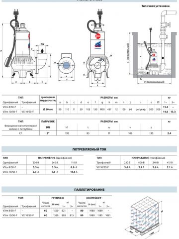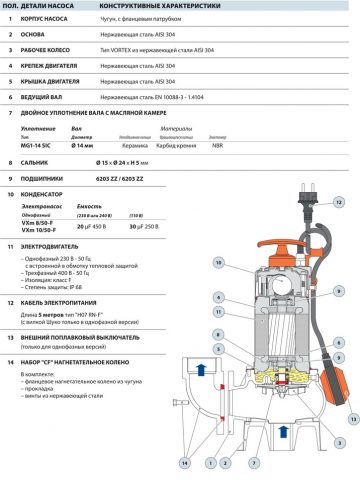 Погружной фекальный насос VX-F с фланцевым патрубком